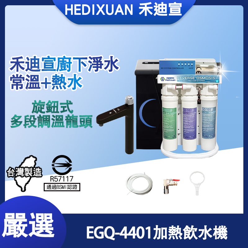 可過濾除垢/軟化水質/降低水垢形成 活性碳濾心吸附水中汙染物/去除重金屬(鉛/汞/銅...等等)/農藥/餘氯/臭味異味,即開即飲雜質、無機物、重金屬等物質去除,透過逆滲透過濾後成為純水快拆式直出淨水機,日碳大水量EGQ-4401淨水機,放桌上、廚下都適合,使用更高階的膜片,放大水量,出水更加快速