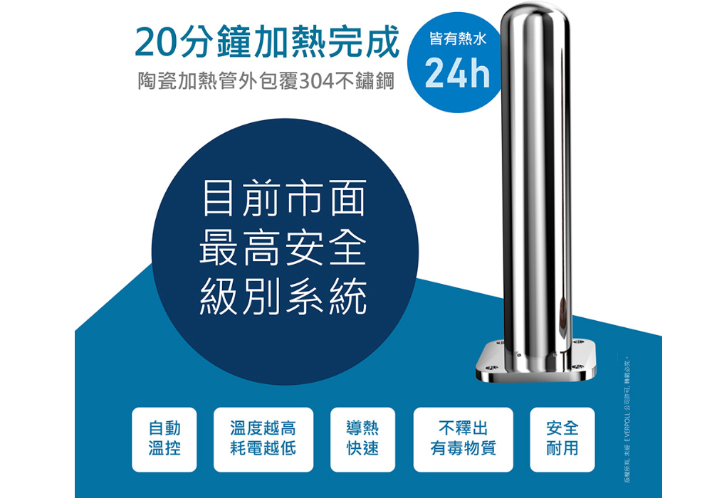 ▲無壓裝置、不鏽鋼加熱管,安全可靠