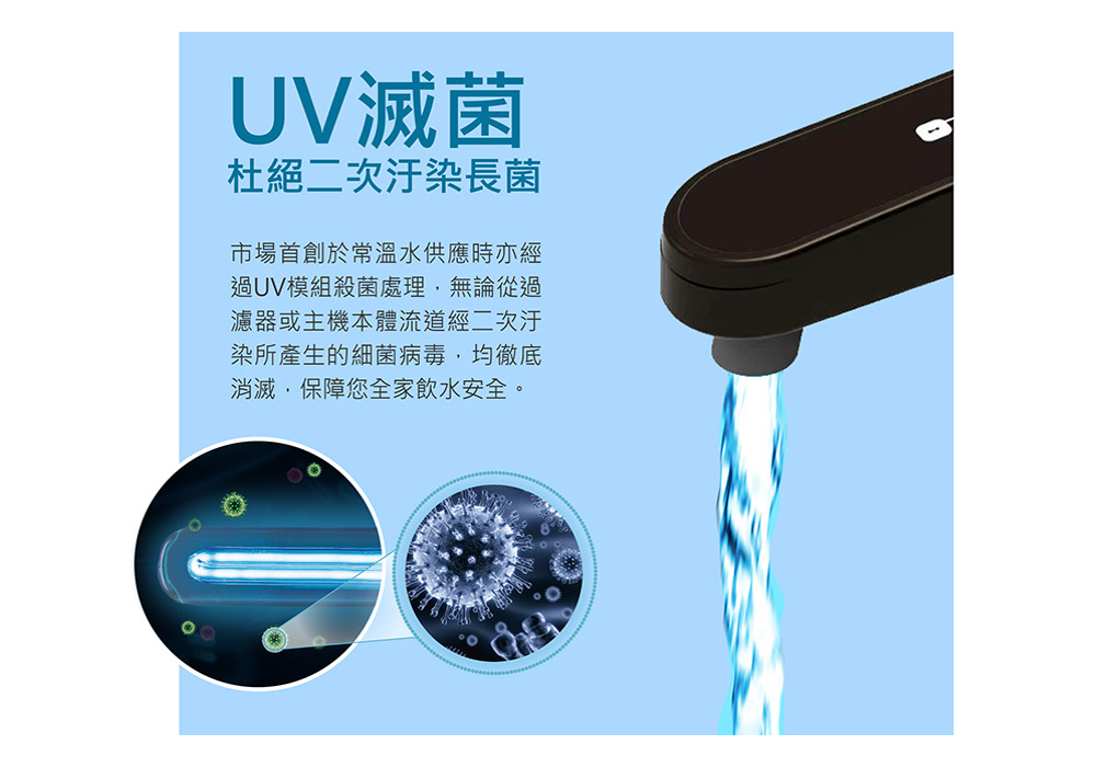 ▲UV滅菌出水口淨化防護,