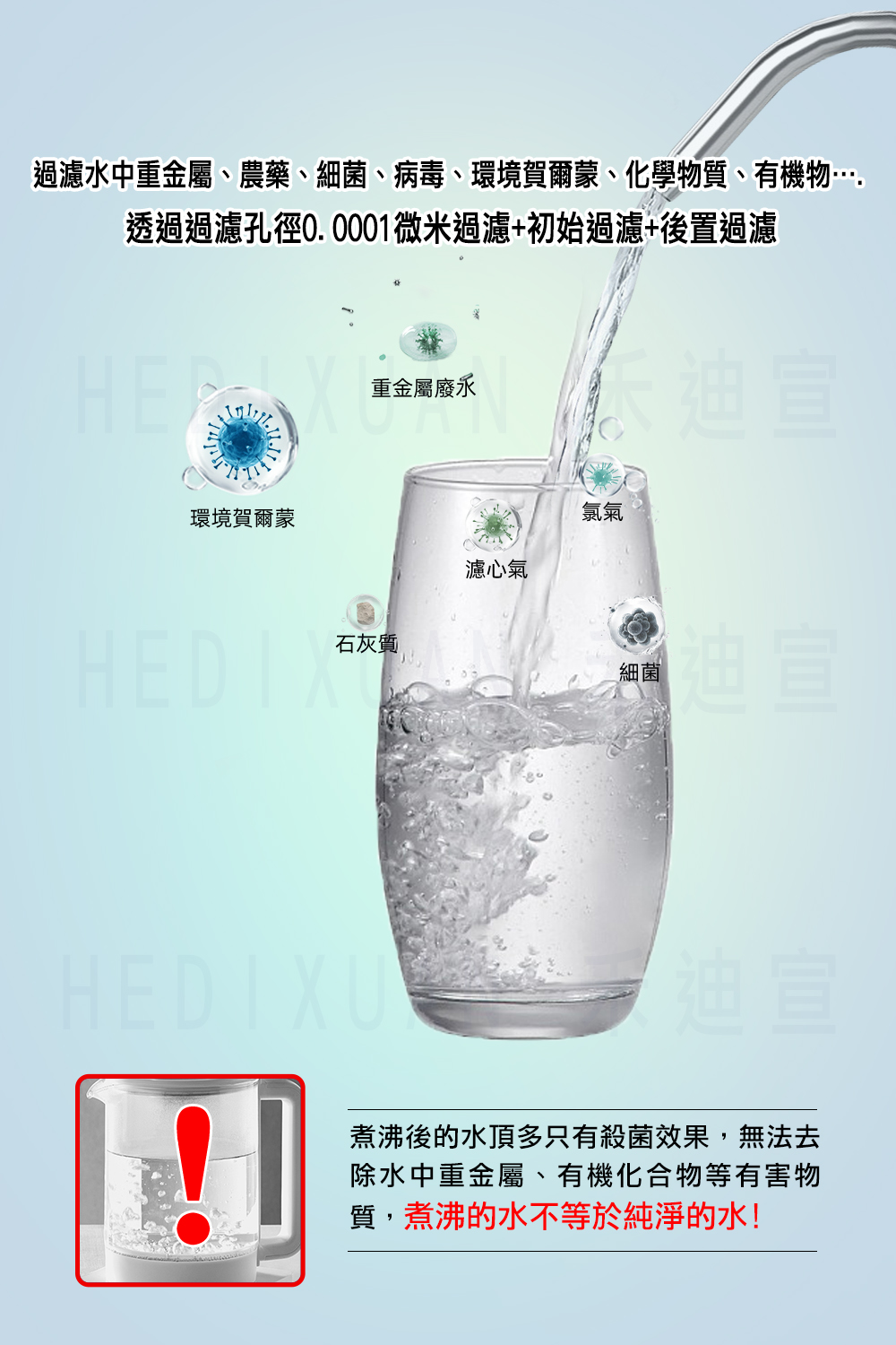 嚴格把關從淨水器材料到出廠、售後,禾迪宣堅持品質、過濾的效果